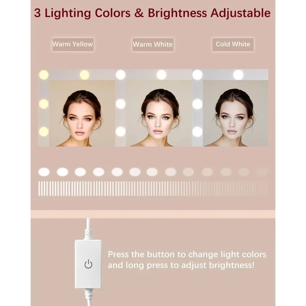 - 3-Color Lighting Modes and Adjustable Brightness: The makeup table features 11 LED lights with adjustable brightness and 3 selectable light color modes: cool white, warm white, and warm yellow. Simply touch the switch to customize the lighting effect