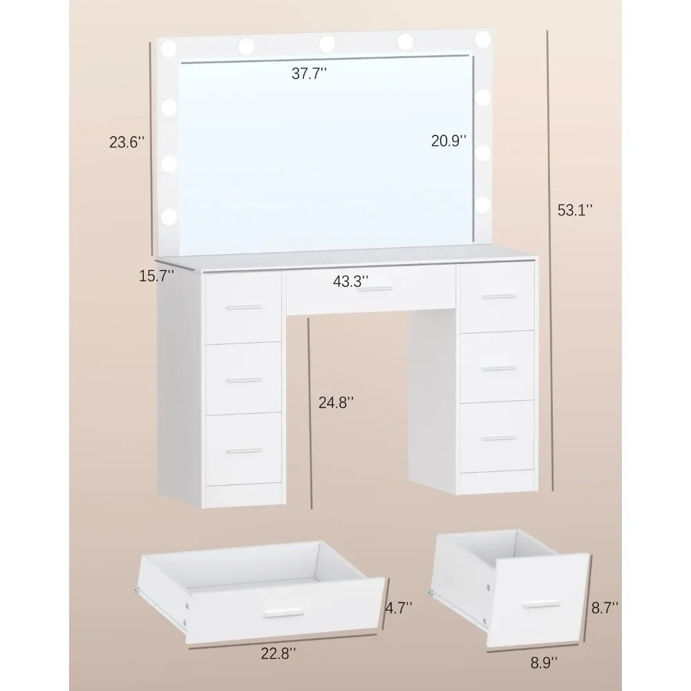 - Large Mirror Design: The vanity desk with a sophisticated lighted large mirror is thoughtfully designed with your beauty needs in mind. The 24.8-inch distance from the drawer bottom to the floor ensures a comfortable sitting height for everyday use