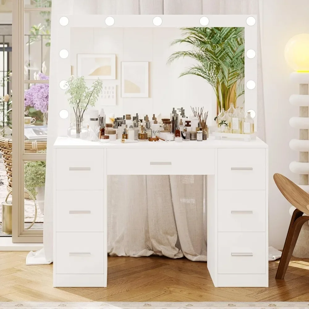 - Ample Storage Space: Still concerned about a cluttered vanity? This makeup vanity with 7 spacious metal sliding drawers, providing an ideal solution. It helps keep your dressing and grooming area neatly organized while meeting your daily makeup needs
