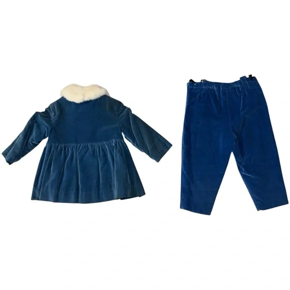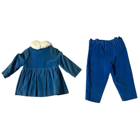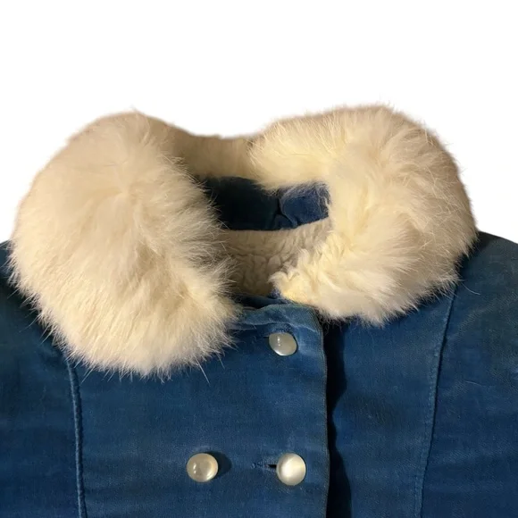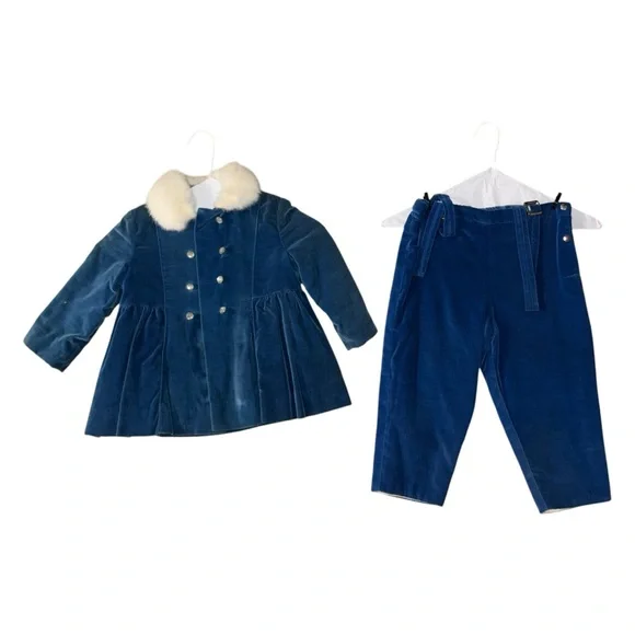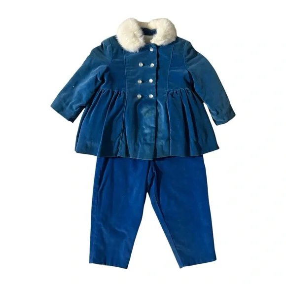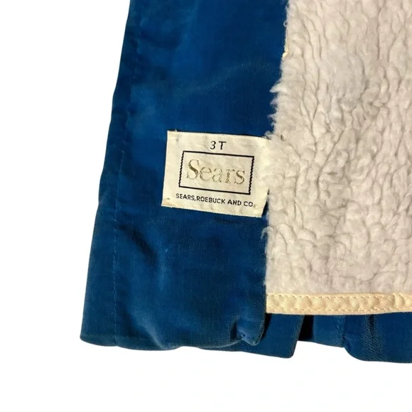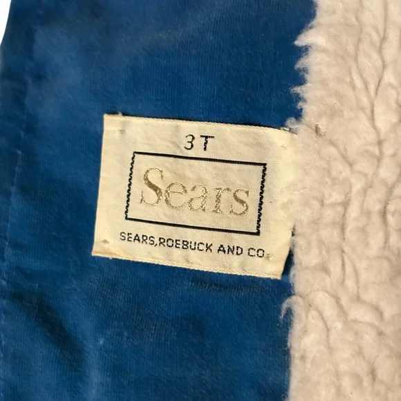 This vintage Sears Roebuck and Co. toddler outfit is a must-have for any stylish baby! The blue suede material is perfect for winter, and the jacket and pants style is both comfortable and fashionable. The outfit features a button closure and is available in size 3T.The brand is Sears, and the department is baby. The outer shell material is suede, and the type is a coat and pants. The color is blue, and the season is winter. This vintage outfit is perfect for any collector or fashion-forward parent. Please refer to the measurements for the correct fit.