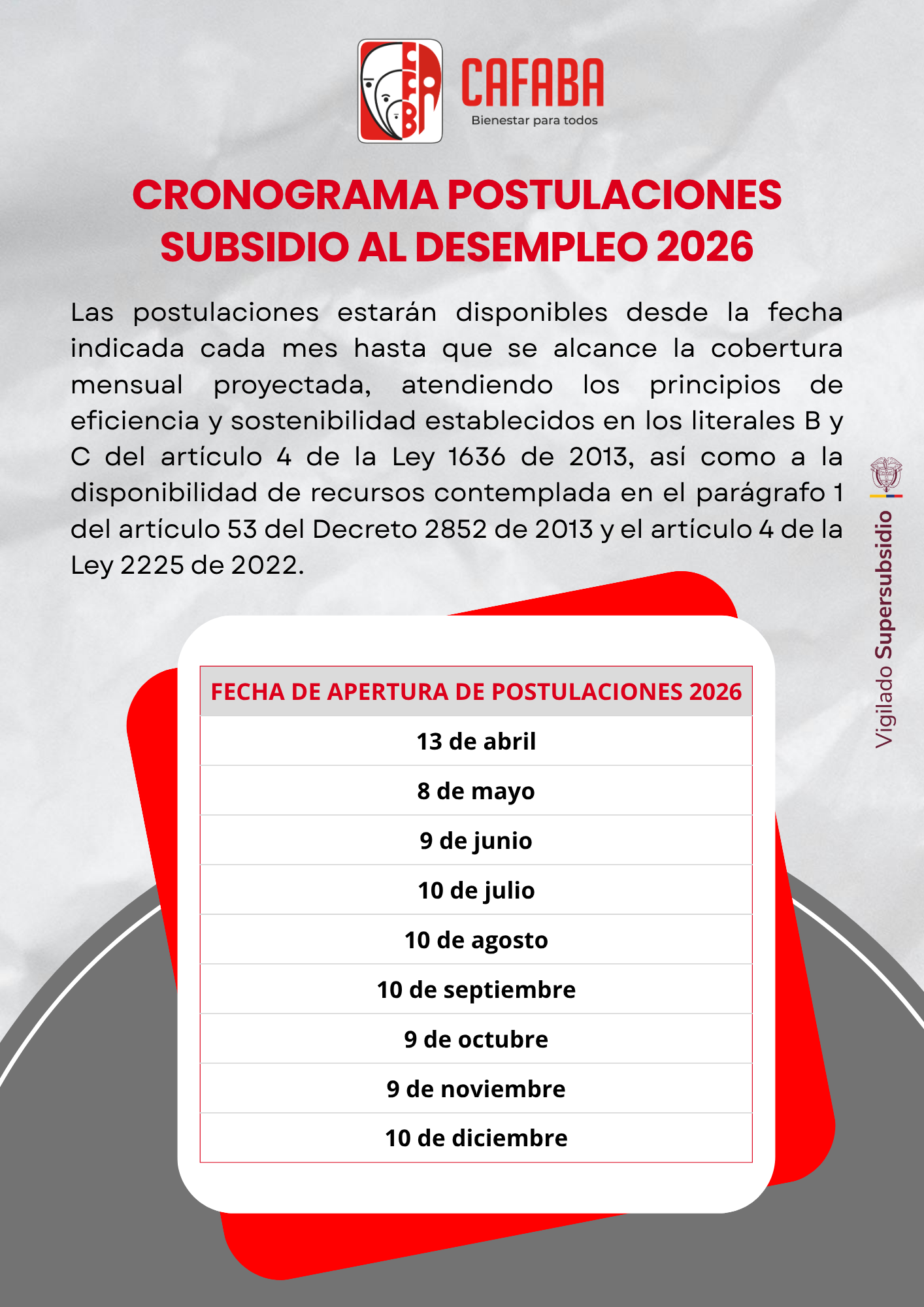 Las Cajas de Compensación Familiar CAFABA deberán verificar, dentro de los quince (15) días hábiles siguientes a la petición del cesante, si cumple o no con las condiciones de acceso a los beneficios del Fondo de Solidaridad de Fomento al Empleo y Protección al Cesante FOSFEC, establecido en la presente Ley 2225 de 2022.