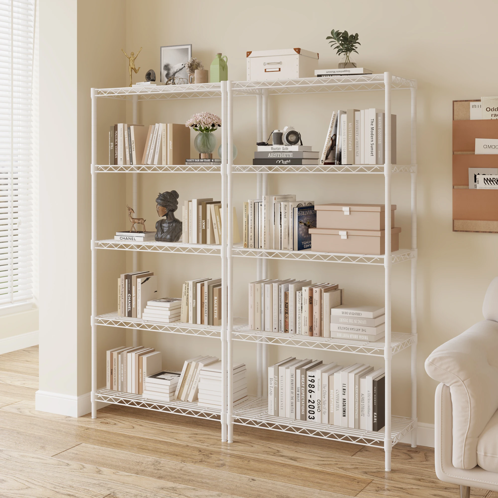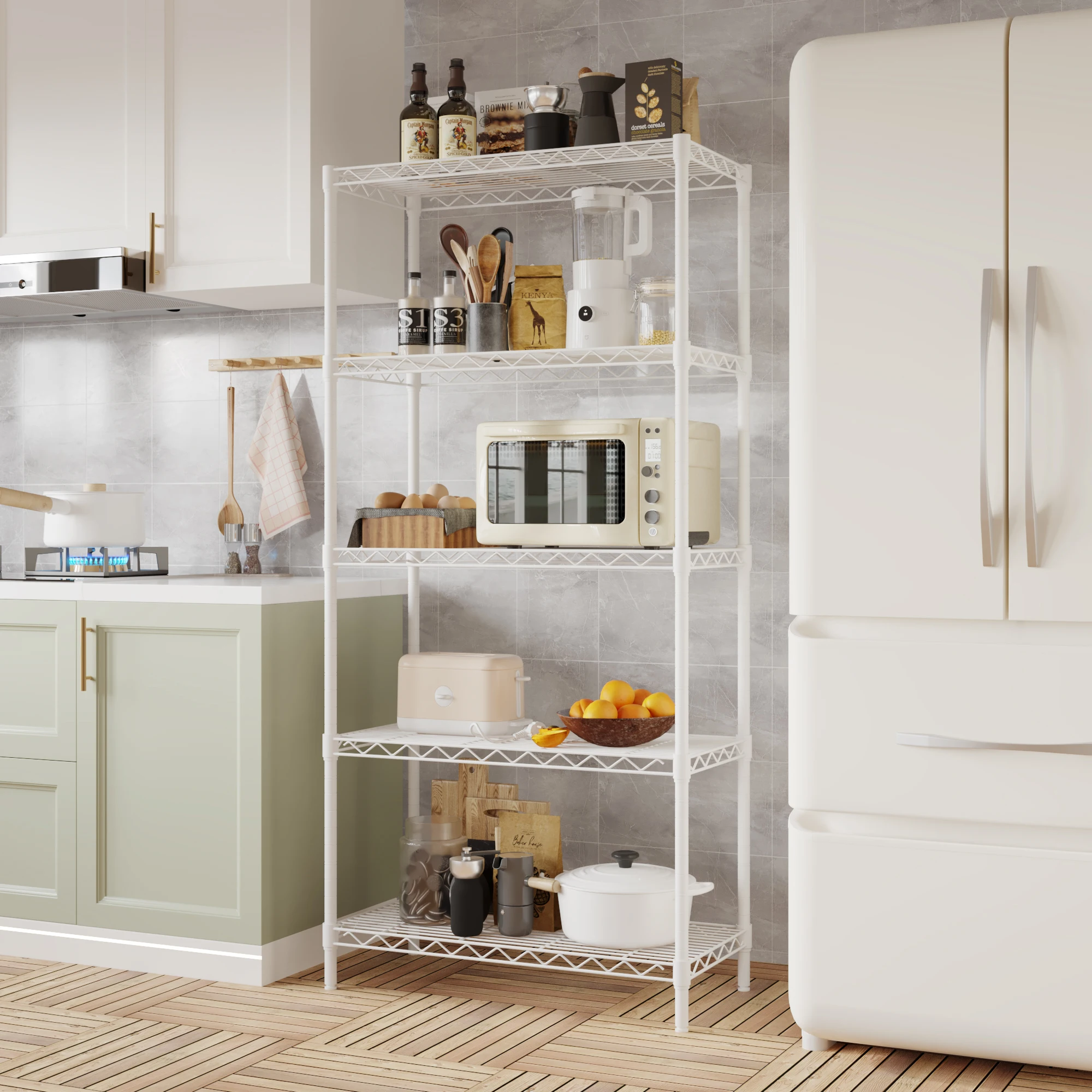 Our 5-tier wire shelf unit stands on sturdy leveling feet, providing a non-slip grip that ensures durable positioning and a stable storage space. This feature is particularly beneficial for uneven floors, ensuring that your shelves remain level and secure.