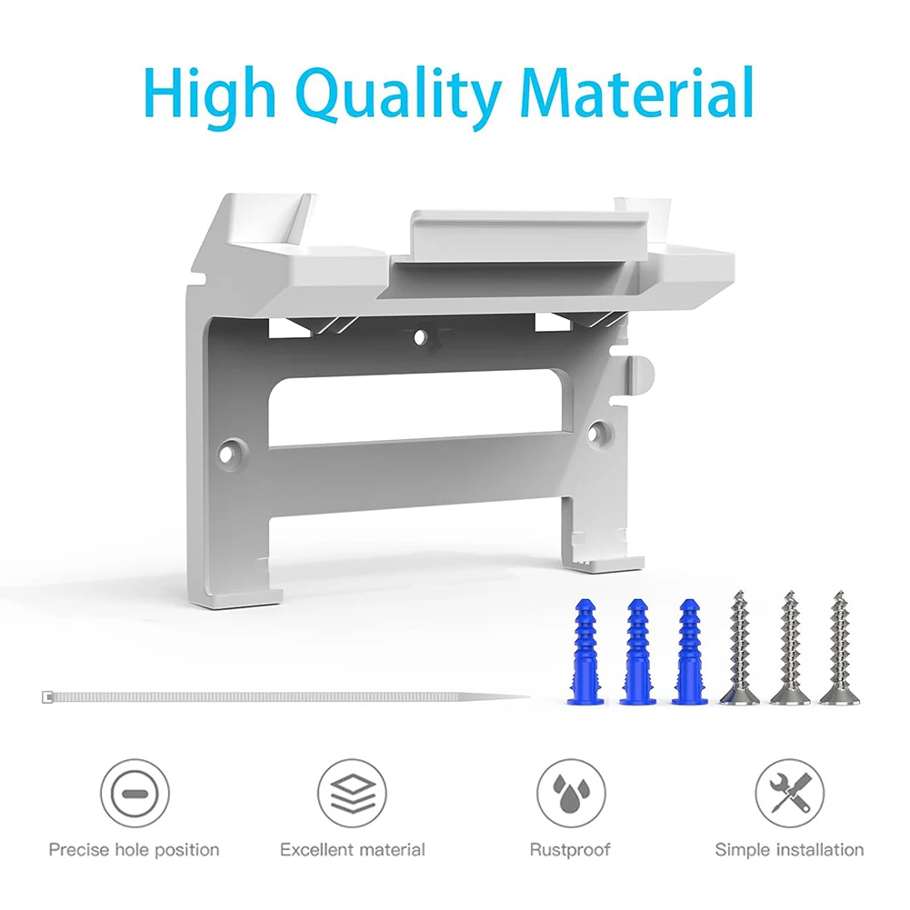 Feature: 1. Design for Optimal Fit: This router mount power supply brackets holder is specifically Compatible with Starlink Gen 3 router and power cable, utilizing precise molding for a snug fit that enhances stability and connectivity while protecting your router from accidental damage. 2. Quality Materials: Made from sturdy ABS plastic, this satellite internet kit offers a reliable and platform for your satellite components, ensuring long-lasting performance and stability in various environments. 3. Space-Saving Solution: The 2-in-1 wall holder seamlessly combines your router and power cable into a compact unit, making it perfect for RVs, living rooms, cafes, and cabins. It reduces clutter and frees up workspace, keeping your area organized and tidy. 4. Signal-Friendly Design: Our wall mount features an open design that allows you to position your router at the ideal angle without compromising signal strength. The elevated, hollow design also promotes better heat dissipation, enhancing performance and coverage. 5. Easy and Quick Installation: This router bracket is designed for user convenience, requiring no tools for installation. The process is quick and straightforward, and all necessary screws are included in the packaging for your convenience. Specification: Origin: Mainland China Product name: Router bracket power bracket Color: white Material: ABS Packaging size: 190*152*88mm Gross weight: 305g