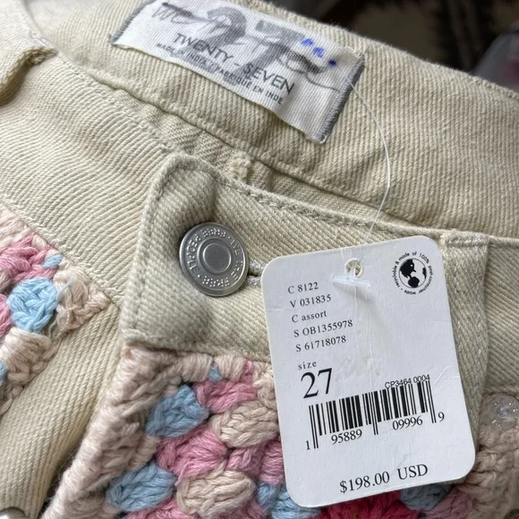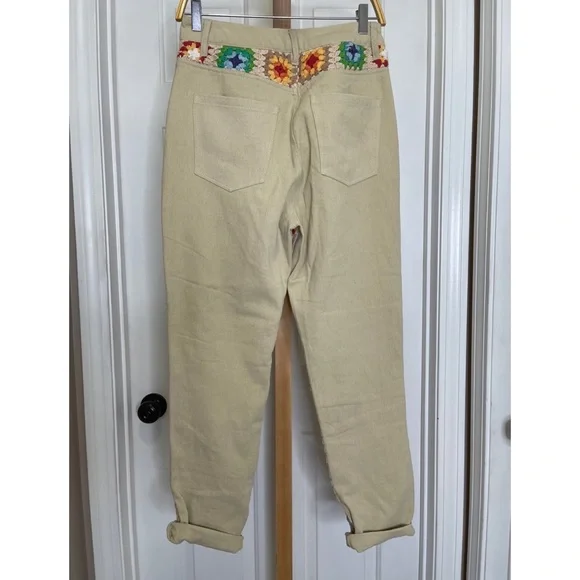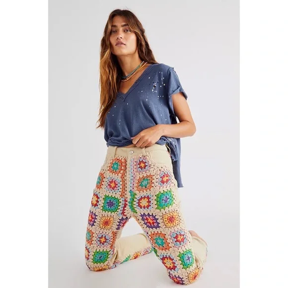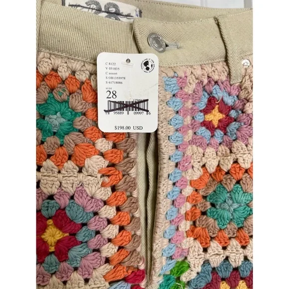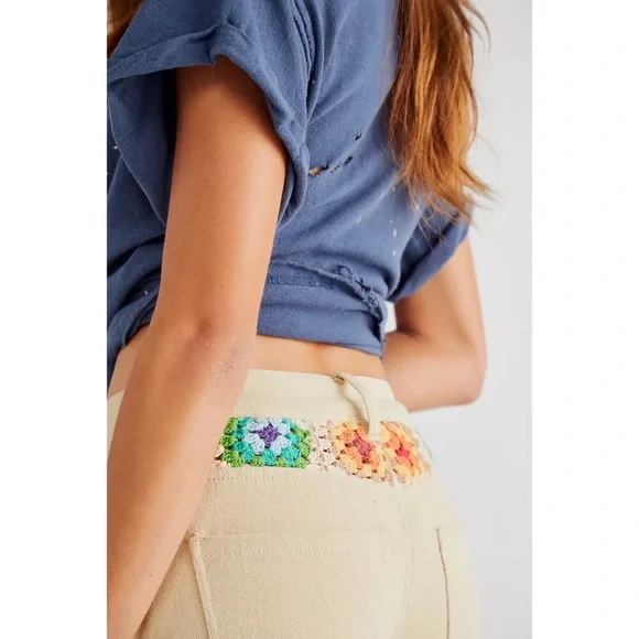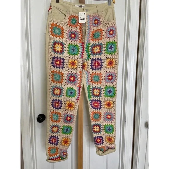 Cool in crochet, these perfect mom-style jeans from our We The Free collection feature multicolored knit paneling throughout in a high-rise, tapered-leg silhouette.Button-fly closureFive pocket designRelaxed fitWe The FreeMachine Wash ColdImportTrim: 100% Cotton100% CottonNEW NEVER USEDLINE THRU TAG IS TO PREVENT STORE RETURN💯 AUTHENTIC!!!Please note that all sales are finalA2