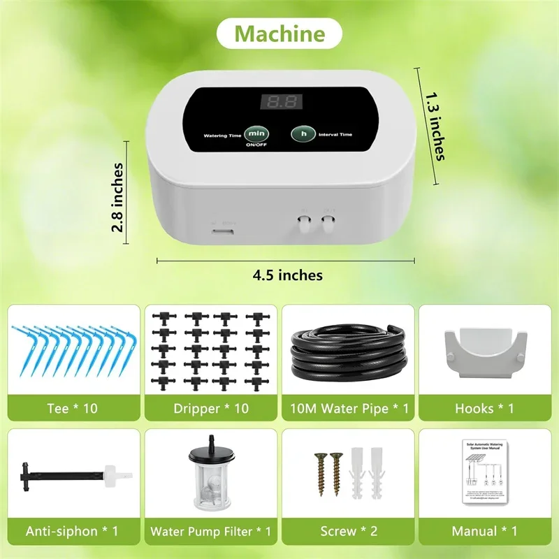 Garden Irrigation Controller with Timed Automatic Watering Device Built-in 1800mAh Battery Plant Watering System USB Charging