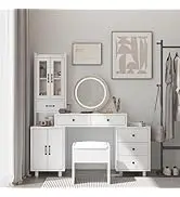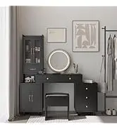 4. 【Sturdy & Durable Structure】:The dressing table is made of high-quality particle board. The structure is firm and ensures the stability of the table and stool. It features stylish metal handles that contribute to both its aesthetic appeal and functionality.It\u2019s an ideal gift for your wife, daughter or mother on holidays.
