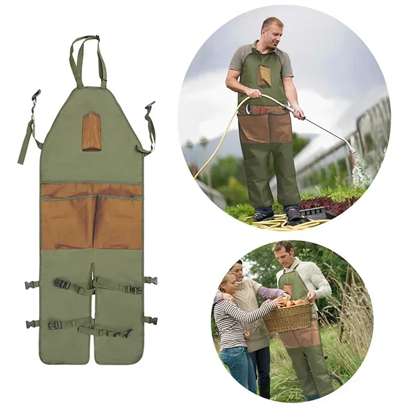 This garden apron features a split-leg design that allows you to move freely while still keeping your clothes covered and protected from stains and dirt.
