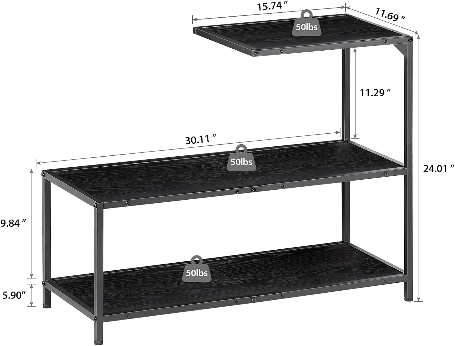 【Solid Construction】: Crafted from a sturdy metal frame and durable particleboard shelves, this narrow side table boasts a strong and stable structure. Each shelf supports up to 50lb, which fully meets your daily storage needs