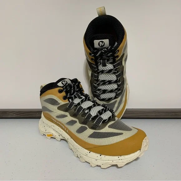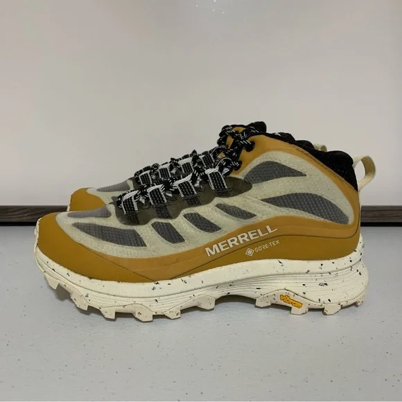 Merrell Women's Moab Speed Mid GORE-TEX Hiking Shoes-Size 6 (4.5 Men’s)-Gold Multi-GORE-TEX® Waterproof Membrane-Breathable Mesh and TPU Upper -100% Recycled Laces and Webbing -Padded Collar -Protective and Abrasion Resistant Synthetic Toe Cap -100% Recycled Breathable Mesh Lining -Removable PU Footbed -100% Recycled Mesh Footbed Cover -Rock Plate for Protection -FloatPro™ Foam Midsole for Lightweight Comfort-Vibram® EcoStep Outsole Provides Added Durability and Improved Grip on Wet and Dry Surfaces -Vibram® Traction Designed to Increase Traction-Vegan-Friendly-NWT-New without Box