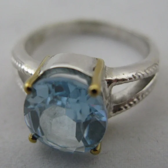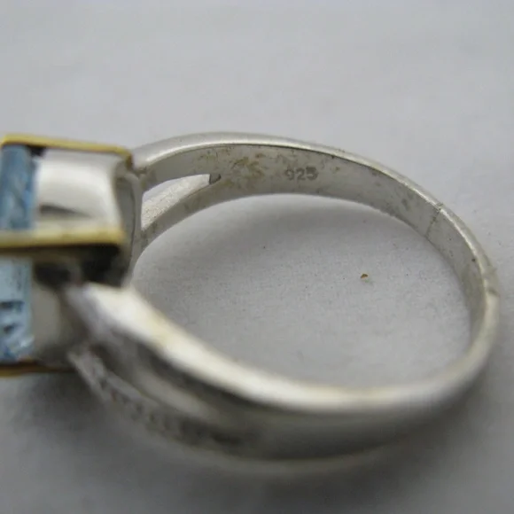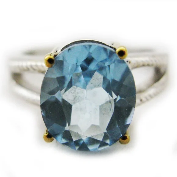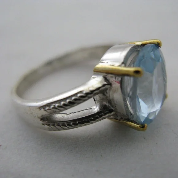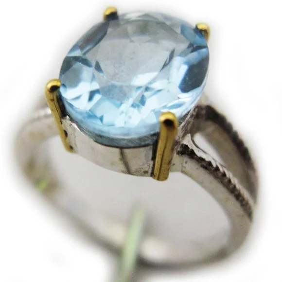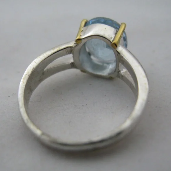New womens ring, big blue topaz oval cut gem stone/gemstone. Sterling silver ringstamped/marked 925 with 18K yellow gold accent/claw or prongs, holding the stone. Hurry! We only have ONE PIECE of this item! Note: ALL SALES FINAL, be sure to check all multiple photos provided before buying.SIZE: Women's ring, Size 10ITEM SPECIFICS:Condition: New without tagsSeller Notes: Beautiful RING, fine jewelry, big blue topaz gem stone.Main Stone Creation: UnknownOccasion: Anniversary, Birthday, Christmas, Graduation, Mother's Day, Valentine's DayMain Stone Color: BlueMaterial: GemstoneMetal: Sterling SilverMain Stone: Blue TopazBrand: UnbrandedRing Size: 10Setting Style: ProngType: RingMetal Purity: 18k (Prong Setting)Main Stone Shape: OvalStyle: SolitaireBase Metal: SilverTheme; Beach, Beauty, Nature, Sea Life, VacationCountry/Region of Manufacture: UnknownNumber of Gemstones: 1Country of Origin: UnknownBe sure to check out all photos of actual item.Seller Code: smbx-j01-pnkbxWe sell all kinds of items like new and preowned clothes, bags, jewelries, books, decors, andmore.
