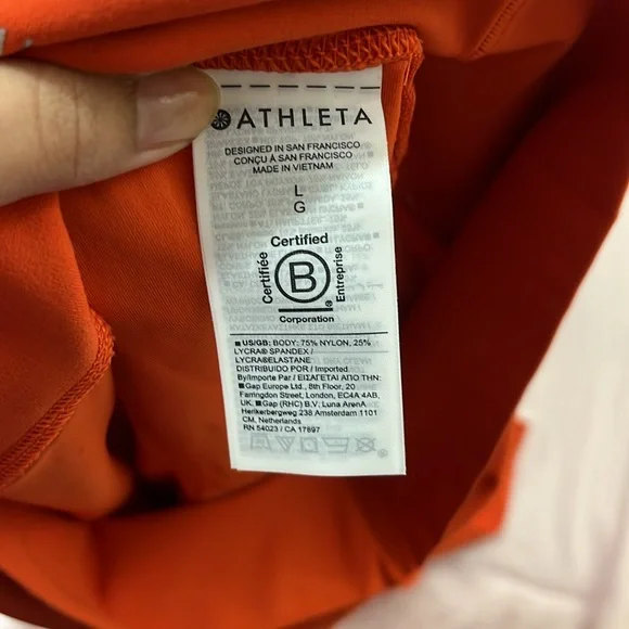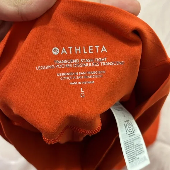 • 75% Nylon/25% Lycra• WICKING: Pulls sweat away from the body to the surface of the fabric so it can evaporate• Fitted next to the body with a high-rise waistband• Inseam: Regular/Plus: 27"The model picture makes these leggings look red but in reality, they're more of a red-orange.Please look at the real photos for reference.I kept a pair for myself so you can see what they look like on a person.I am wearing period panty boyshorts so the butt area might look a little weird in the pics.Smoke-free and pet-free homeFeel free to ask any questions in the comments.Open to reasonable offers, please check out the rest of my closet to make bundles and save.