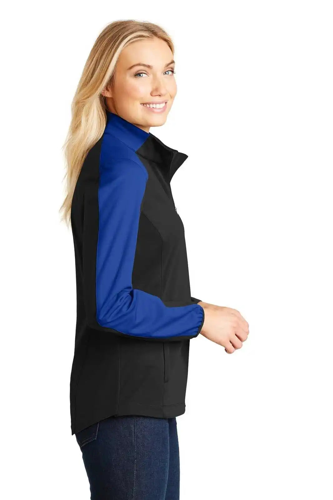 Port Authority L718 Ladies Active Colorblock Soft Shell Jacket - Deep Black True Royal