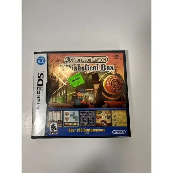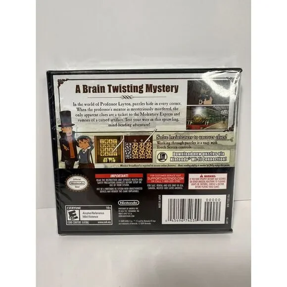 This is a factory sealed copy of "Professor Layton and the Diabolical Box" for the Nintendo DS. Released in 2009 in Japan, this role-playing game is part of the popular Professor Layton series. The game features a sub-genre of boxing and is rated E10+ for Everyone 10 and older. It is published by Nintendo and is designed for the NTSC-U/C region.