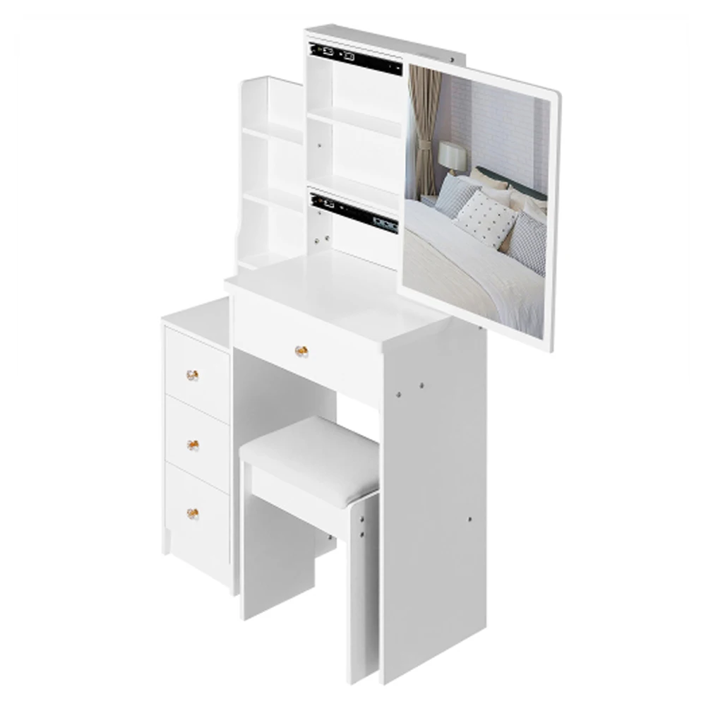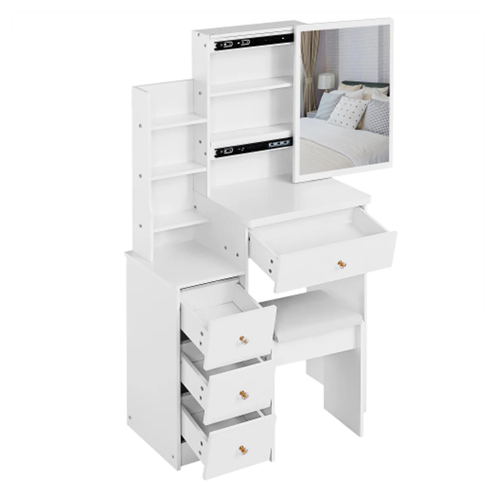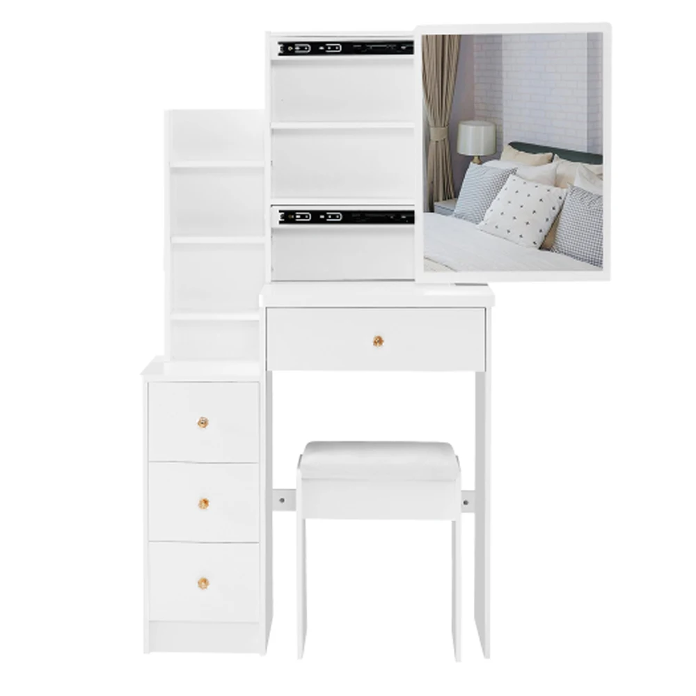 Small Size Left Bedside Cabinet Vanity Table Cushioned Stool Extra Large Sliding Mirror Multi Layer High Capacity Storage