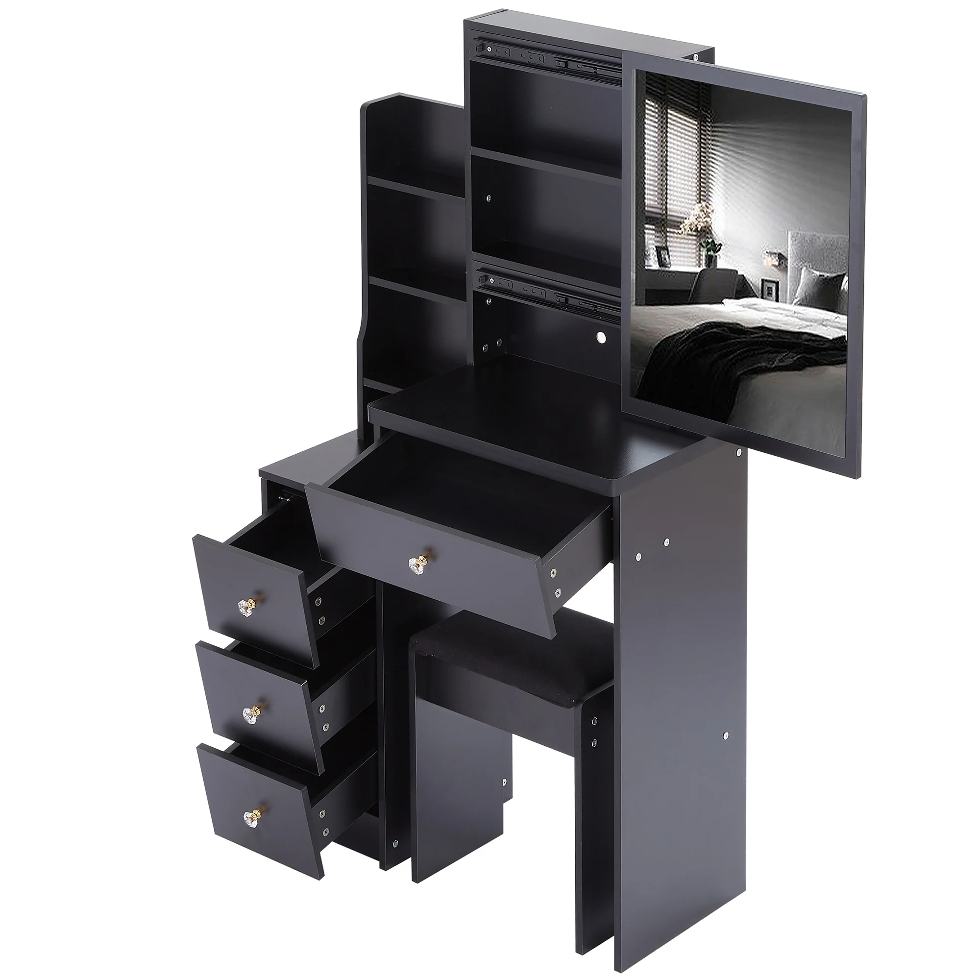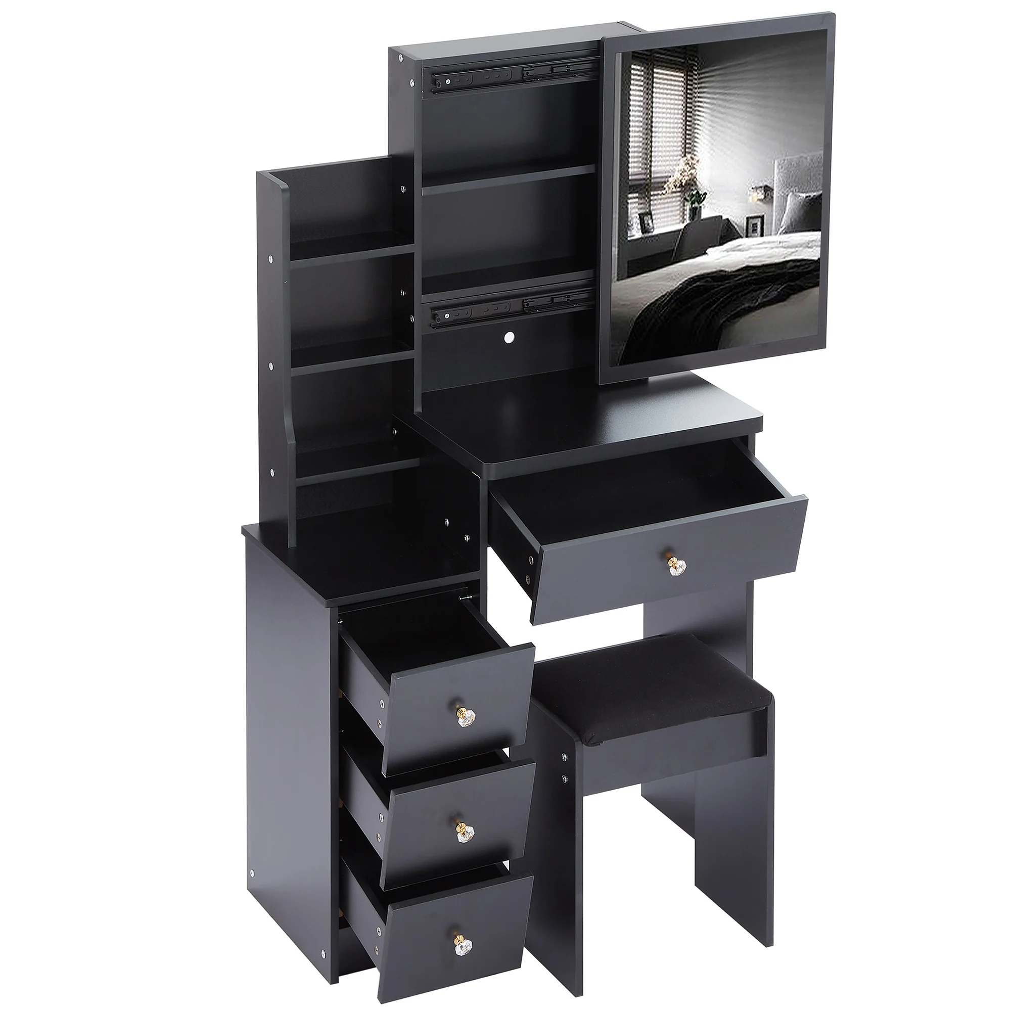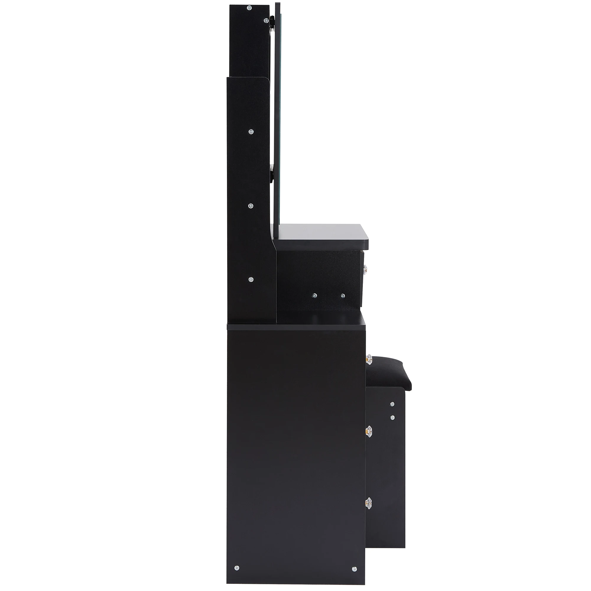 Small Size Left Bedside Cabinet Vanity Table Cushioned Stool Extra Large Sliding Mirror Multi Layer High Capacity Storage