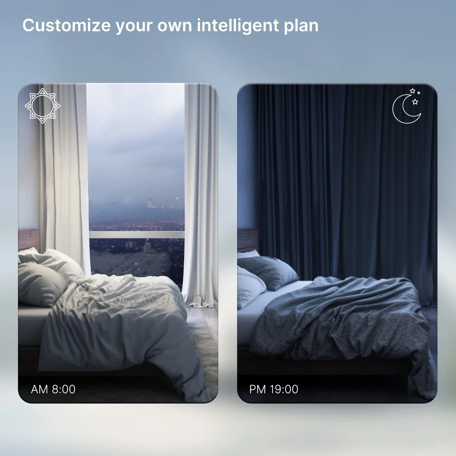 For example: 7:30 open the curtain, let the sunlight slowly wake you up in the morning. 15:00 close the curtain to prevent the strong ultraviolet rays of sunlight damaging the furniture. 22:00 cluse the curtain before going to bed.