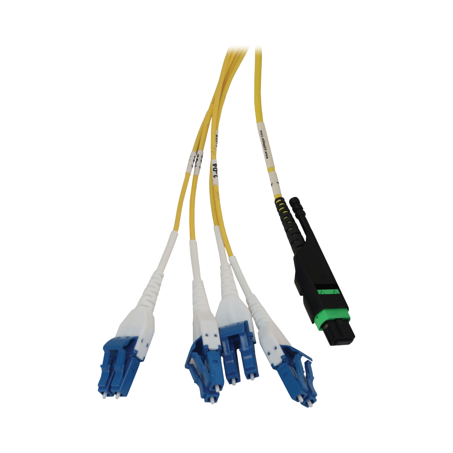Tripp Lite Preloaded Fiber Panel, 1U, 2x (12F MTP/MPO-APC to 4x LC Duplex F/M) 8F Trunk Cables, OS2 Singlemode, 20 m (65.6 ft.)