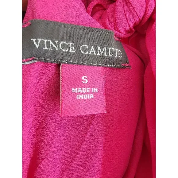 Vince Camuto Wide Leg Halter Jumpsuit Women's S Pomegranate Pink Tie Zip Closure Vince Camuto Wide Leg Halter Jumpsuit Women's S Pomegranate Pink Tie Zip ClosureRetail $99.00This Vince Camuto wide-leg jumpsuit is a must-have for any fashion-forward woman. The pomegranate pink color adds a pop of color to any wardrobe, while the zip/tie closure ensures a secure and comfortable fit. Perfect for both casual and party/cocktail occasions, this jumpsuit is made from 100% polyester fabric that is breathable and machine washable. The halter neckline and wide-leg design provide a modern and chic look, while the sleeveless design and 29-inch inseam make it perfect for summer and spring. This one-piece jumpsuit is available in size S and is suitable for regular fit women. The jumpsuit is made in India and is perfect for anyone looking for a stylish and comfortable piece of clothing.* Lined* Imported* High neckline with pleats; tie closure at back* Polyester* Machine washableFAST SHIPPING!!!* Quality Assurance:* Each item is meticulously inspected and sealed post-photography to ensure the highest quality.* While we strive to identify any flaws, there may be instances where one might be missed. We urge thorough review of all photos.Measurements:* Refer to photos for additional measurements and details.* Item measurements are approximate; previous washings may alter sizing.* Compare our measurement photos with your favorite garments for an acc