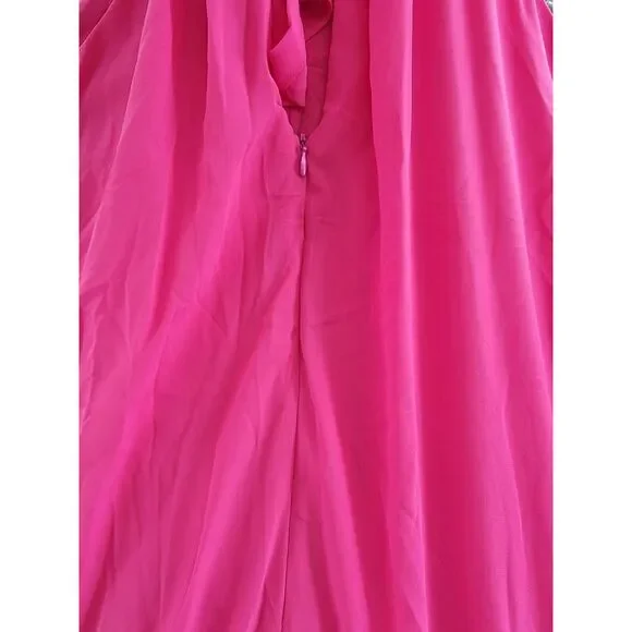 Vince Camuto Wide Leg Halter Jumpsuit Women's S Pomegranate Pink Tie Zip Closure